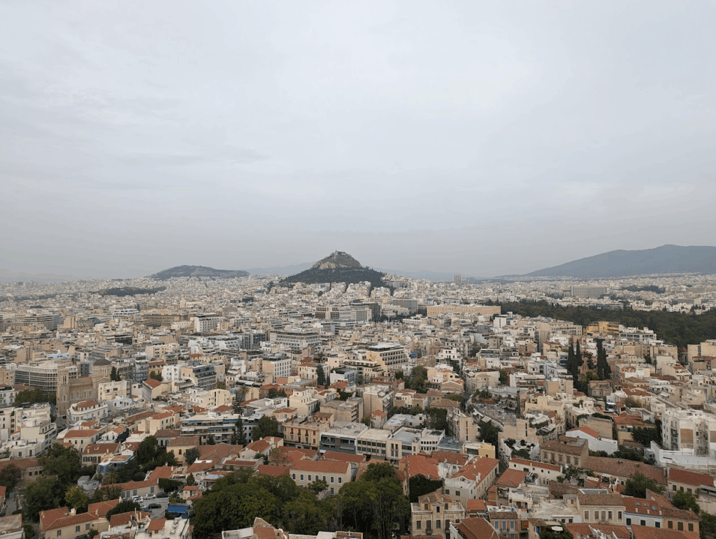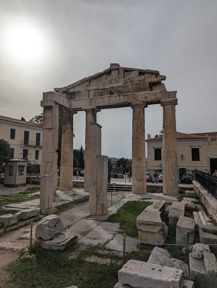 遺跡巡りのスタート地点はモナスティラキ広場。多くの観光客が集まるエリアで、土産物屋が並んでいる。こういう場所を歩くと毎回感心するのが、店員がぱっと見で国籍を判断してその国の言葉で話しかけてくることだ。途中の土産物屋では流ちょうな日本語で話しかけられ、少し心が揺れたが、何も買わずに遺跡方面へ進んでいった。