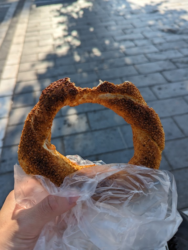 目に入ったパンの屋台で、「シミット」という伝統的なパンを買う。