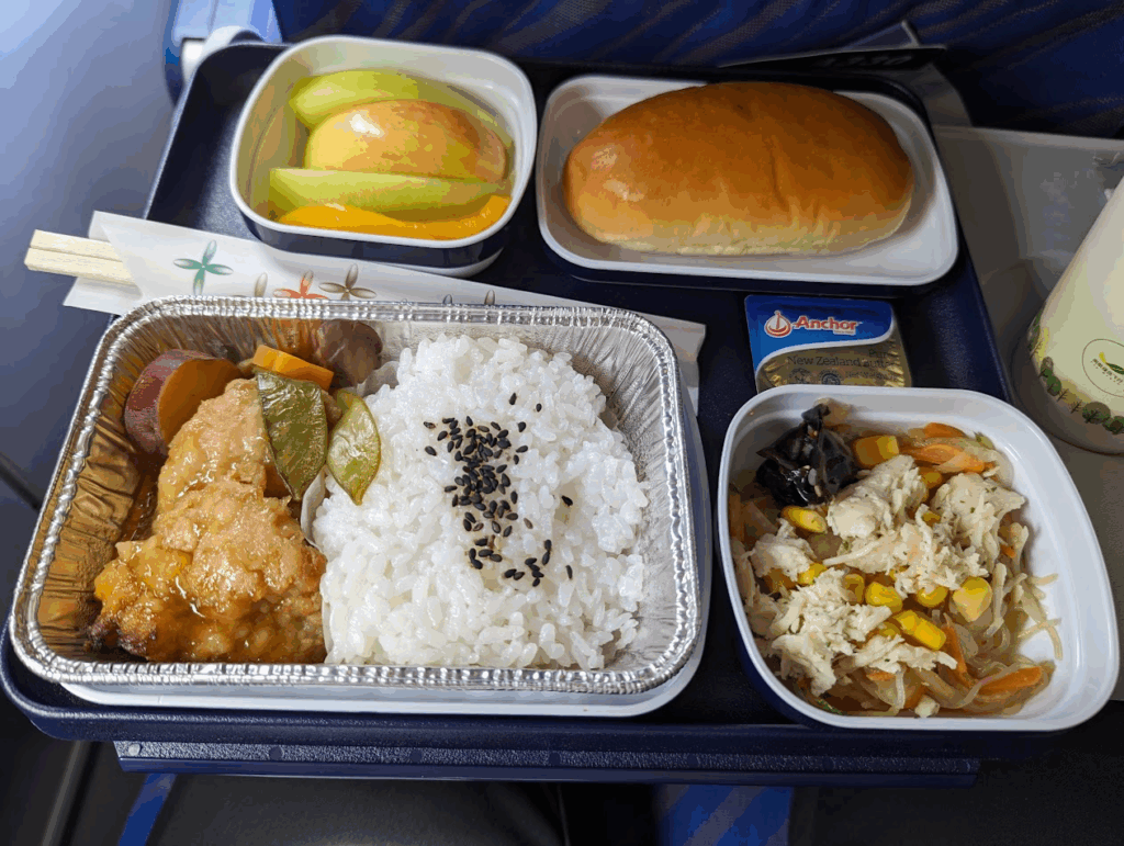 エコノミークラスのわずか4時間程度のフライトで機内食が出るのは、正直ちょっと意外だった。