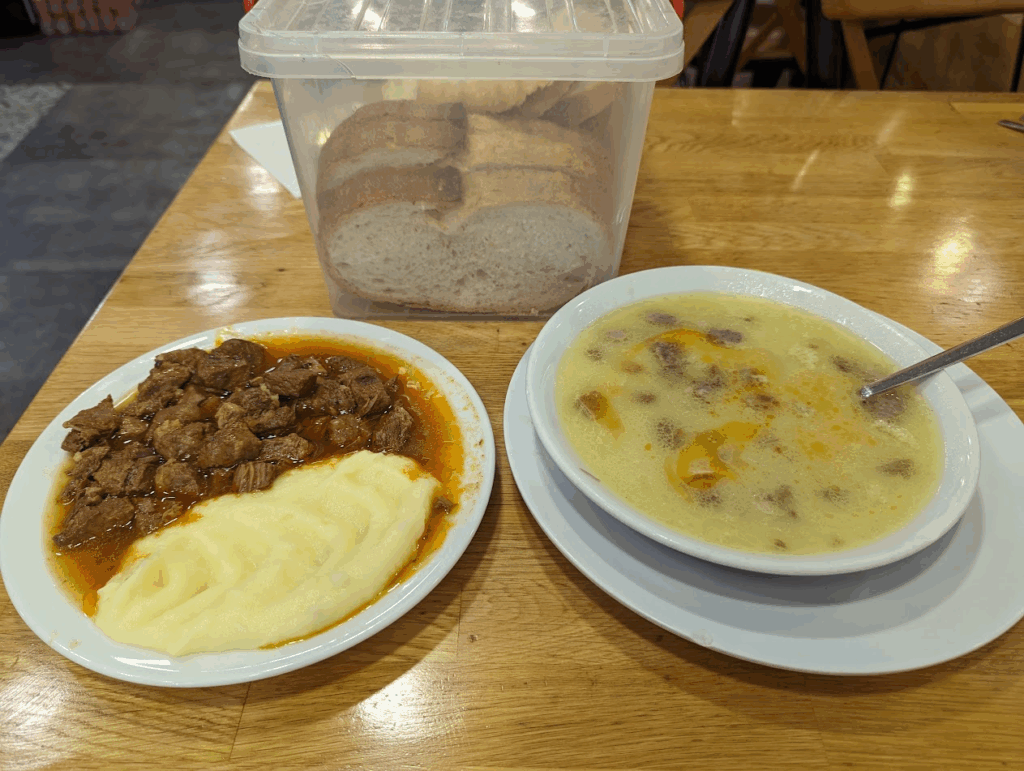 選んだのは「羊の脳のスープ」と「牛肉の煮物のマッシュポテト添え」。